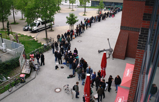 Nej det är naturligtvis biljetterna till premiären mot Ingolstadt som släpps! Ett par hundra Paulifans köade för att inte bli utan dyrgriparna till helgens premiär i Andra Bundesligan mot de totalt glanslösa Ingolstadt. Pauli måste ha världens mest trogna, och tålmodiga fans.