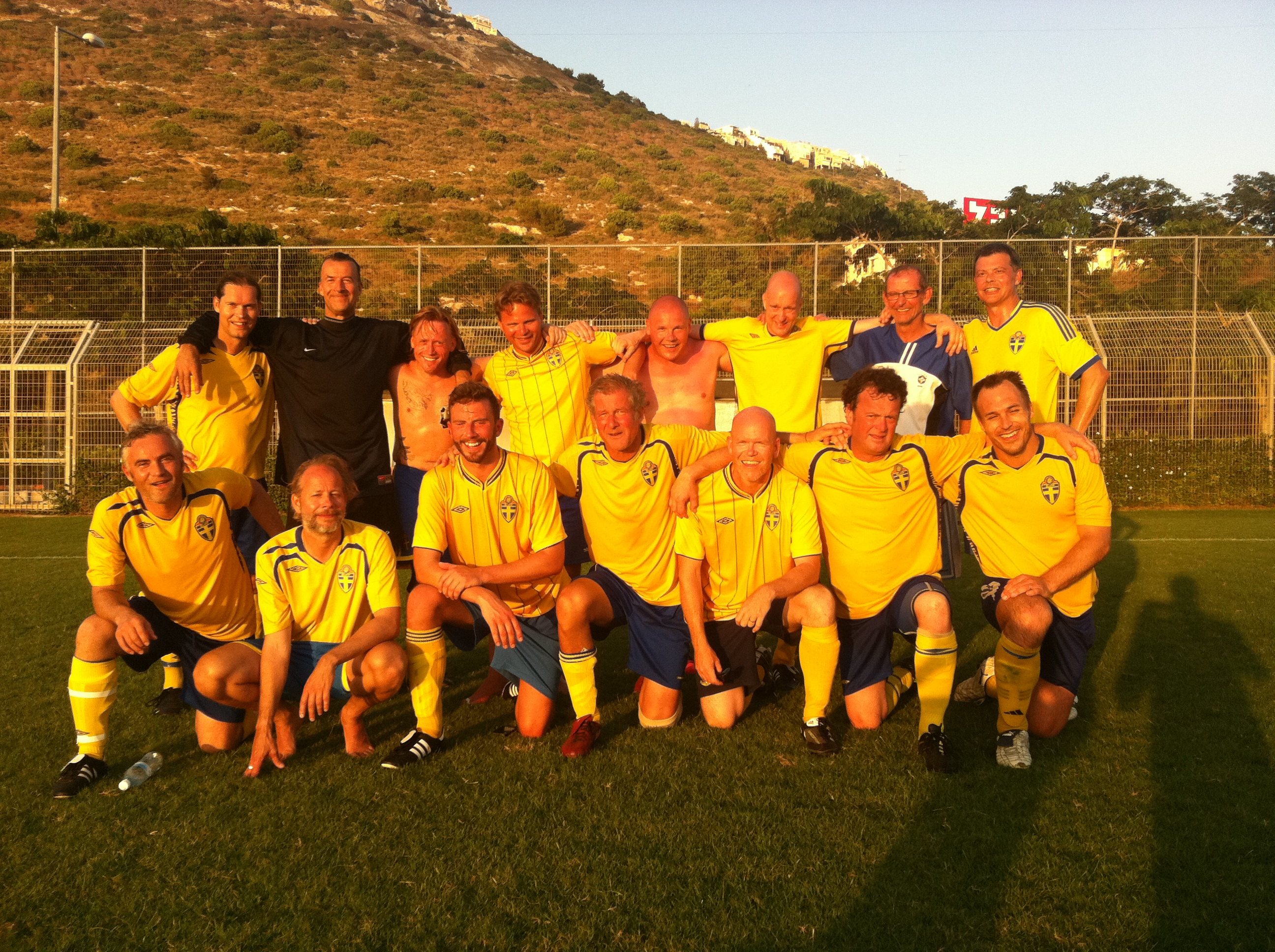 Författarlandslaget tog tre raka förluster och tolv insläppta mål mot fem gjorda: 1-4 mot Israel, 1-5 mot Italien och 2-3 mot Tyskland trots att rabbin vi firade midsommar hos välsignade oss, efter brödet och barnet och maten överhuvudtaget ( det var samtidigt sabbatsmiddag).