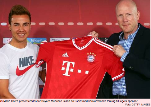 Det här är inte en bild från Adidas PR-avdelning. I går presenterades Peps nye stjärna som lyfter 100 miljoner kronor per säsong. Enbart i lön. En hel del av de pengarna kommer från Bayerna eviga sponsor Adidas. Så hur f a n kommer Götze på idée att klä sig så här. Och alla anställda i Bayern som var inblandade i presentationen – varför regerade de inte?