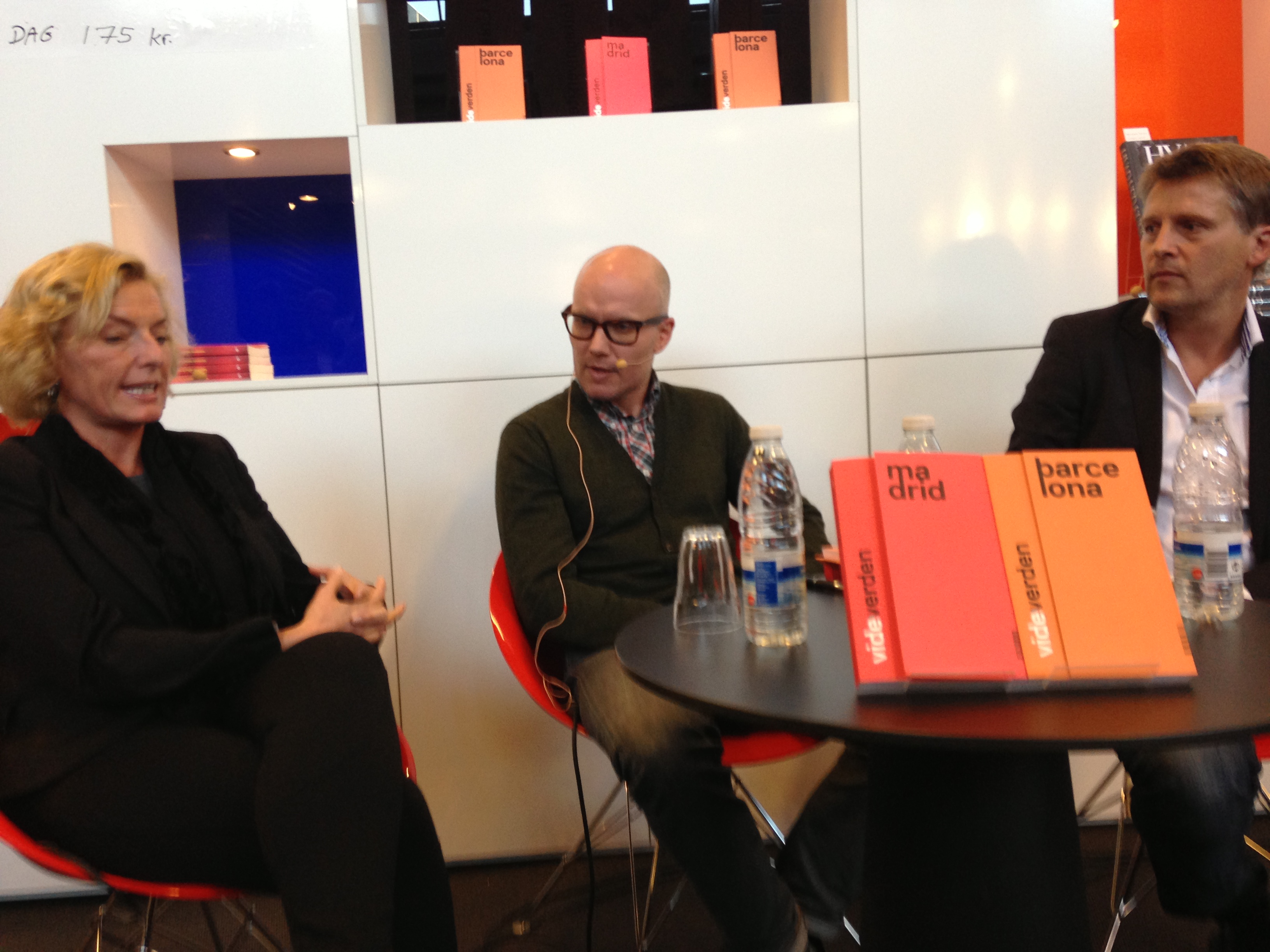 Madrid och Barcelona var ämnet när Århus Universitetsförlag anordnade en paneldiskussion på bokmässan. De ger ut ganska intellektuella, och snygga, guideböcker och eftersom de nu hade en om Barcelona och en om Madrid: varför inte en monterdiskussion om fotboll? Så ca 100 danskar och en svensk trängde sig in en monter och lyssnade på en halvtimmes diskussion om Barça och Katalonien kontra Madrid, Real Madrid.