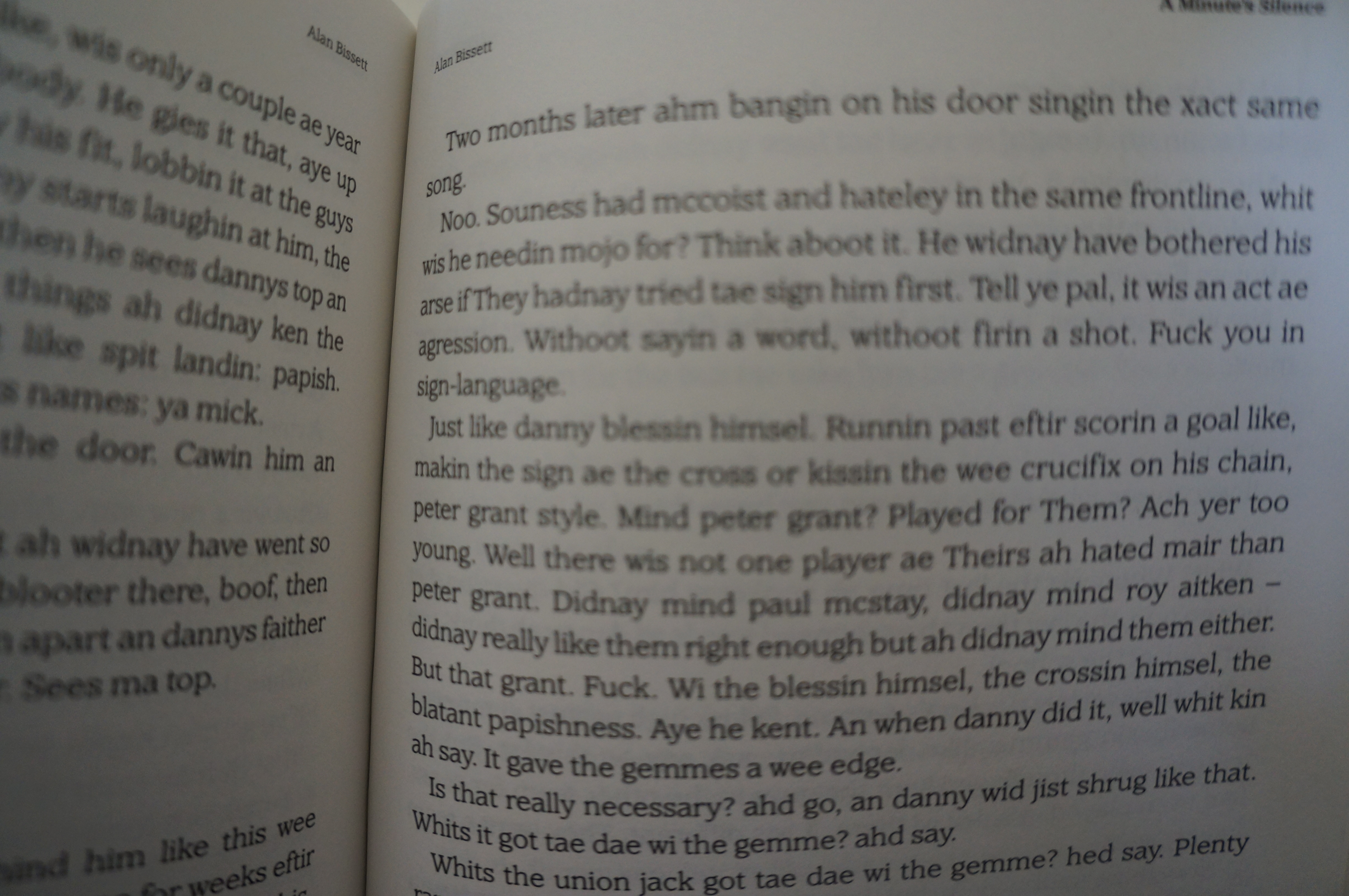 Alan Bissett skriver om två kompisar vars föräldrar har olika religion och om deras uppväxt – på glaswedian, språket som är lättare att ljuda än att höra och följaktligen alltid textas på engelska biografer när de visar skotska spelfilmer. Även två av de andra texterna är skrivna på dialekt, Gud vet vilka men de går att läsa, man vänjer sig.