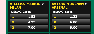 Bra bet! Körde båda lagen gör mål, odds 2,00, på Atletico-Milan, vilken ju gick in.