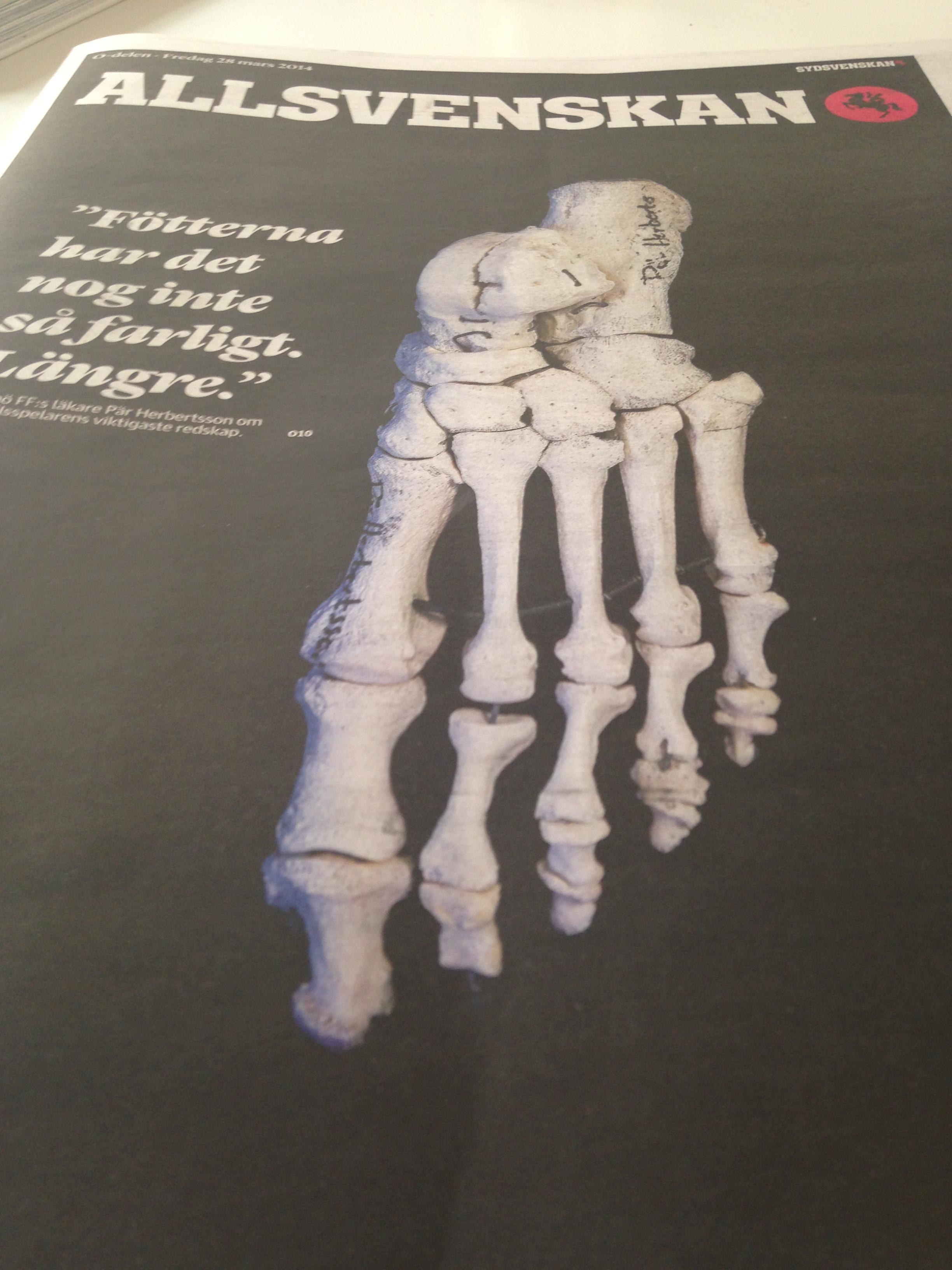 Sedan är kanske inte trycket så bra och texterna kunde vässats betydligt, speciellt vad gäller skor, läster, dobbar e t c. men det är ändå jätteroligt och spännande att bläddra och läsa lite i SDS 20-sidiga fotbollsbilaga. Fotbollsjournalistikens fantasifullhet är inte så död som vi tror. En ortoped, Simon Thern. Pär Hansson och Sara Björk Gunnarsdottirs dröm att kunna gå i höga klackar bär bilagan.