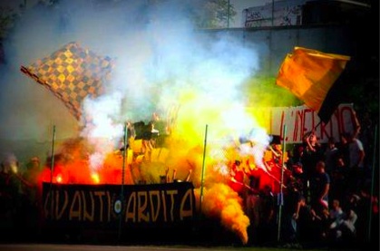 Klubbens ”vänstervridna” filosofi har tyvärr gjort den till måltavla för extremhögern. Igår spelade laget på bortaplan i perfekt harmoni med hemmafansen när plötsligt ett 40-tal ”nyfascister” tog sin in på läktaren och började puckla på Arditaanhängare med olika vapen: sex personer skadades.