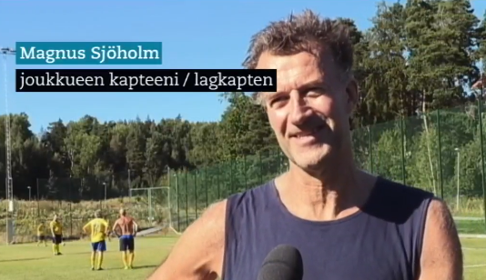 Det blev en OK match mot Finland under Sigtuna Litteraturdagar där jag fick jobba lite i andra halvlek och kanske borde gjort det bättre vi båda målen. Det mest minnesvärda var dock den där sprinklern som satte i gång, med strålen mellan mina ben, mitt under intervjun med SVT. Dessutom klädd i uppvärmningslinné – det var 45 grader på termometern i solen.