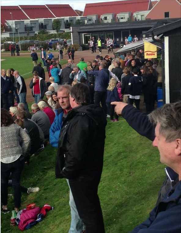 Halvtid, solen i moln, barnjackorna fortfarande avslängda, mycket snack om kommande älgjakt bland gubbarna och Giffen på väg ut mot andra halvlek.