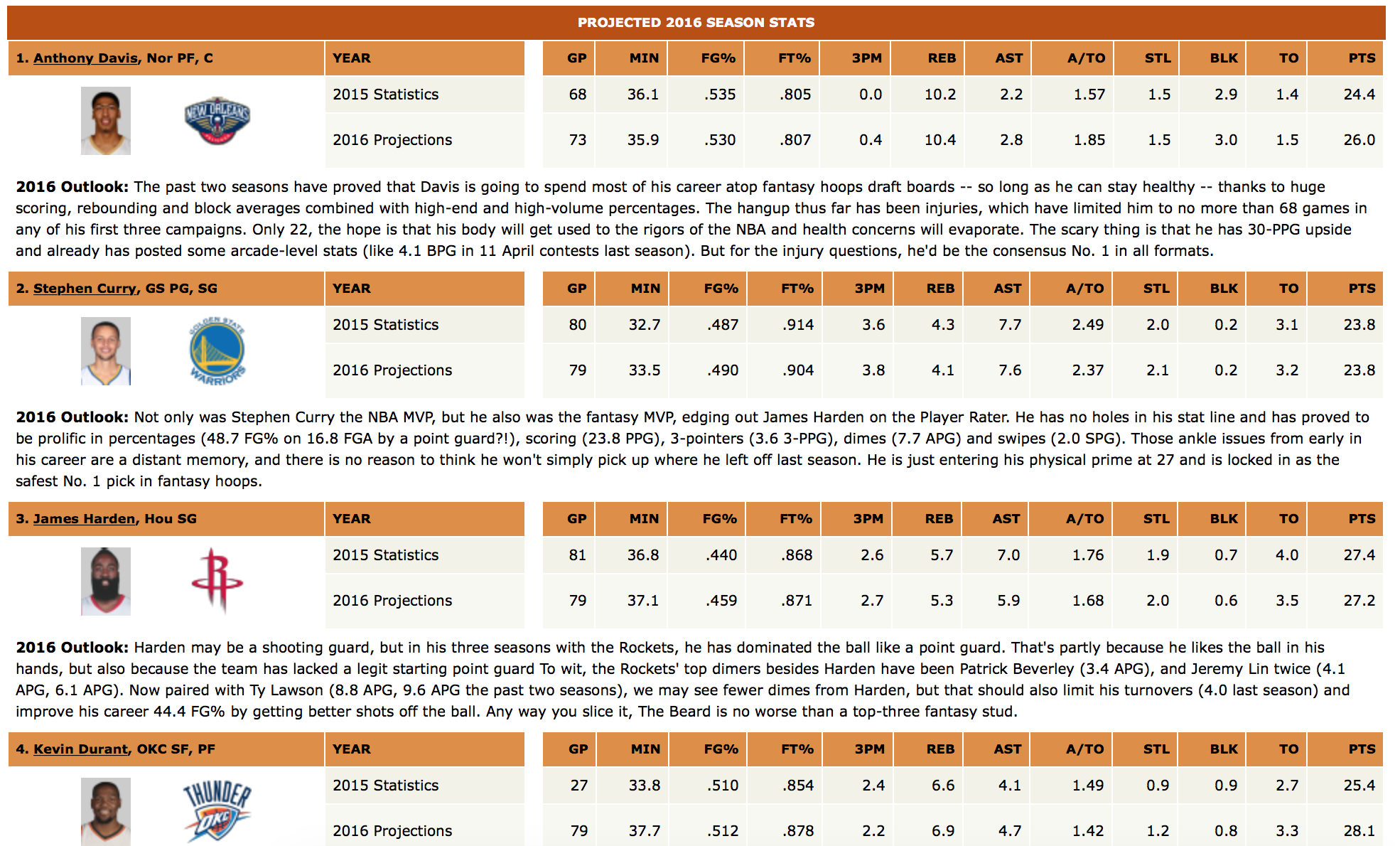 Här kan man läsa om de förväntade siffrorna för olika de fyra bästa NBA-spelarna, enligt fantasyexperternas förväntningar. Finns samma uppgifter och gissar om 300 andra spelare…