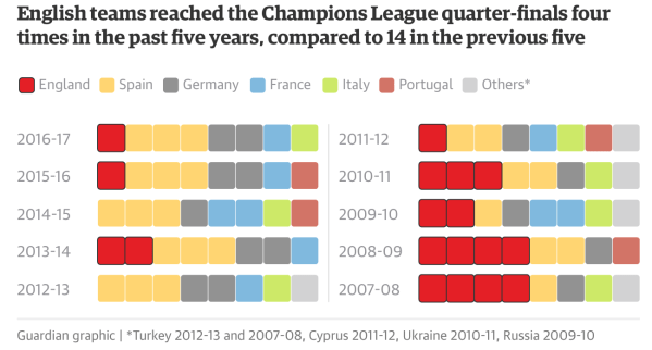 Pss Jag kan mycket väl tänka mig att Chelsea och Liverpool, lansek även ett av Manchesterlagen gör det bra i Europa nästa säsong men efter det kommer en hård Brexit och ifall inte fotbollsspelare undantas kommer det att omedelbart degradera EPL till en liga på samma ungefär samma nivå som Portugal eller Holland. Ska jag vara sanningsenlig tor jag också att engelsk fotboll hade mått bra av det.