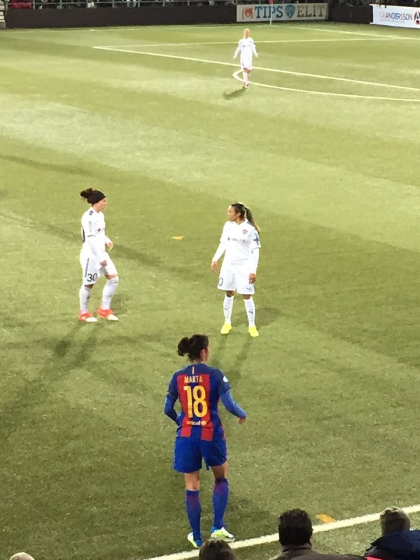 Även med bollen var katalanskorna en klass bättre. Deras vänsterytter hade en förstatouch som Neymar blivit avundsjuk på. Hon fick hårda pass på fötterna och på första touchen fick hon bollen att rulla i väg hårt i exakt den riktning hon ville springa i. Makalöst! Och hon gjorde det flera gånger.  Sedan hade de också en spelfördelare i nr 16 som Rosengård bara kan drömma om.