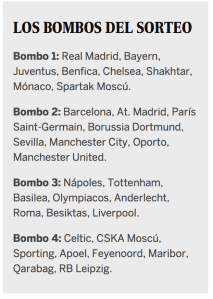 Det knäppa är att Bombo 2 ( skålen/trumman) nummer 2 är starkare än den med ligavinnarna. Precis som i Bombo 3 finns det i ettan fyra lag att undvika och fyra lag som ger anledning att jubla. Att placera mästarna i första gruppen är i mitt tycke fel och helt galet.
