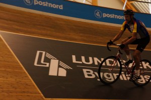 På felinställd cykel på velodromen i Ballerup utanför Köpenhamn.