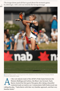 - AFLW, Bild, censur, Erdogan, Foto, Gallipoli, Politik, sexism, Självcensur, Tayla Harris, The Guardian, Ulla Gustavsson