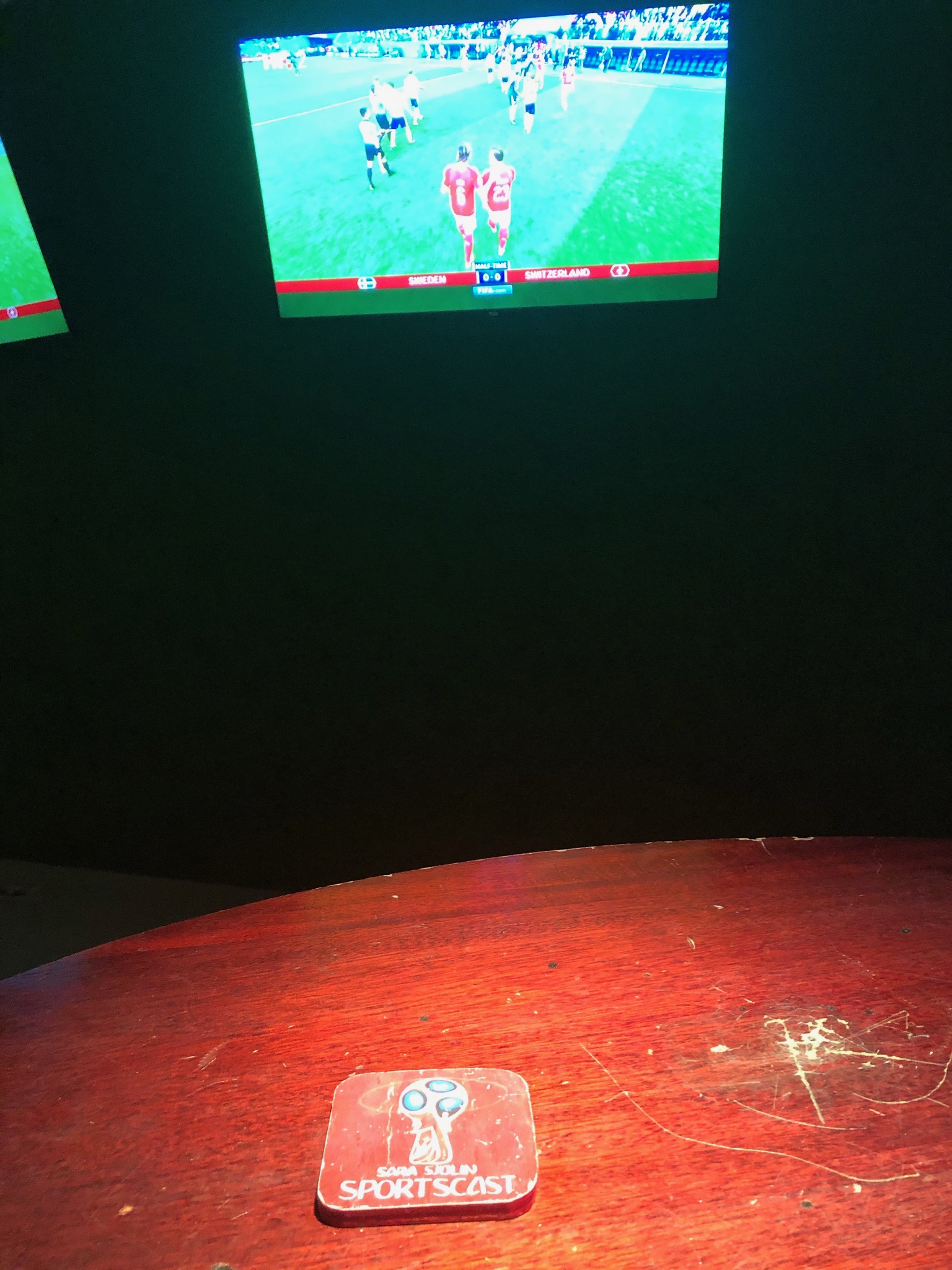 På Copenhagen Contemporarys storsatsning ”Art of Sport” live-kommenterar svenskan Sara Sjölin åttondelsfinalen i VM 2018 mellan Sverige och Schweiz. Från att ”de sparkar av”, över ”Granqvist är trött och ser ut att vara full av ångest” till ”det är över”. En 111 minuter lång videoinstallation (med tillhörande sportbarsinredning, där namn och signering utgörs av ölunderlägg) som verkligen tolkar svensk fotbollshistoria helt annorlunda.