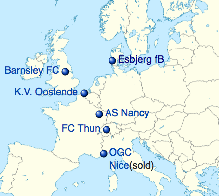 Esbjerg är en av alla dessa större landsortsklubbar som vill storsatsa men åstadkommer lite. Andra wannabees är bland andra AGF (Århus), Ålborg och Odense. De och andra danska klubbar har en rik, ofta utländsk ägare. Chien Lee vill gärna se sig som en global fotbollsklubbsinvesterare men resultatet är lätt patetiskt (se kartan). Han köpte Esbjerg i mars 2021 då de förlorat chansen till uppflyttning.