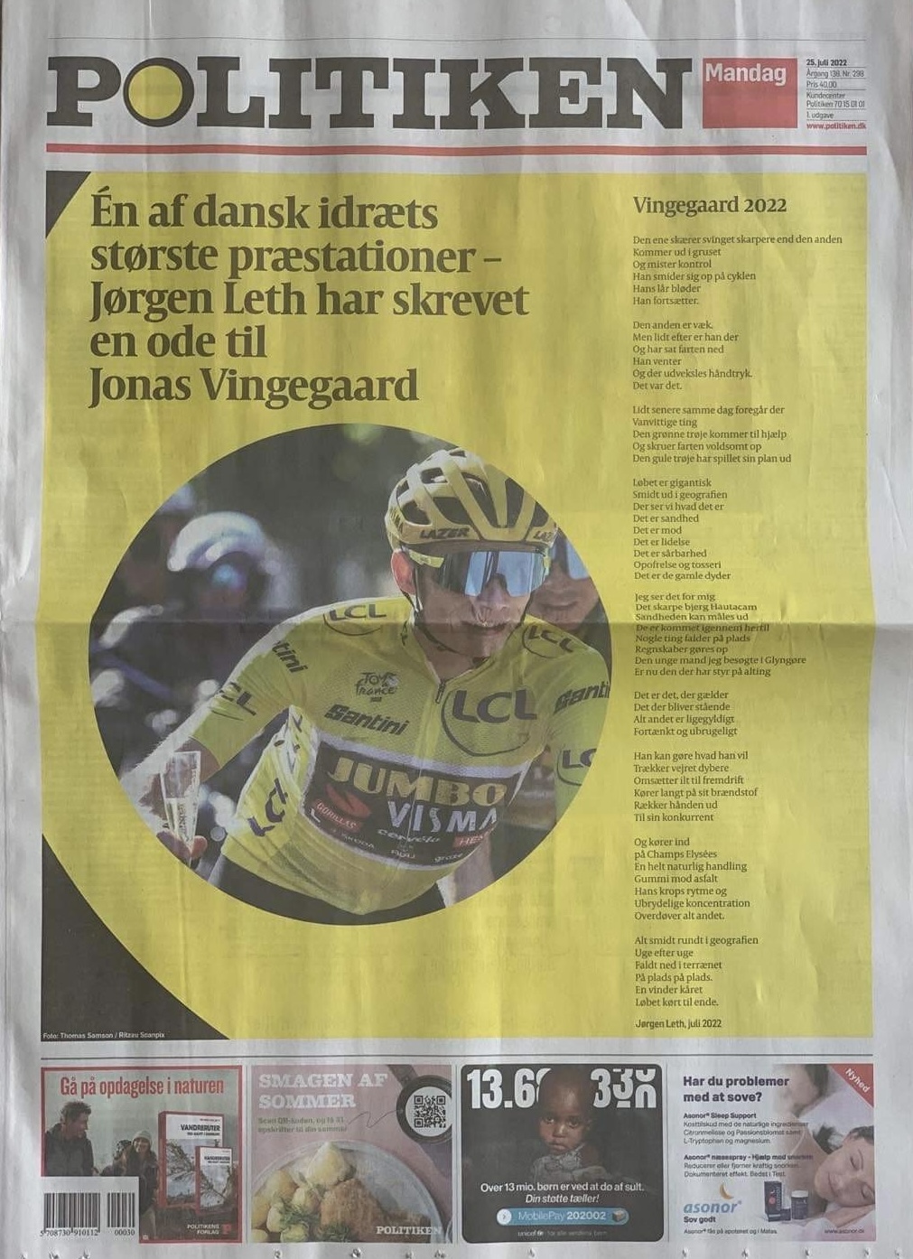 - Jørgen Leth, Jonas Vingegaard, Poesi, Politiken, Vingegaard 2022