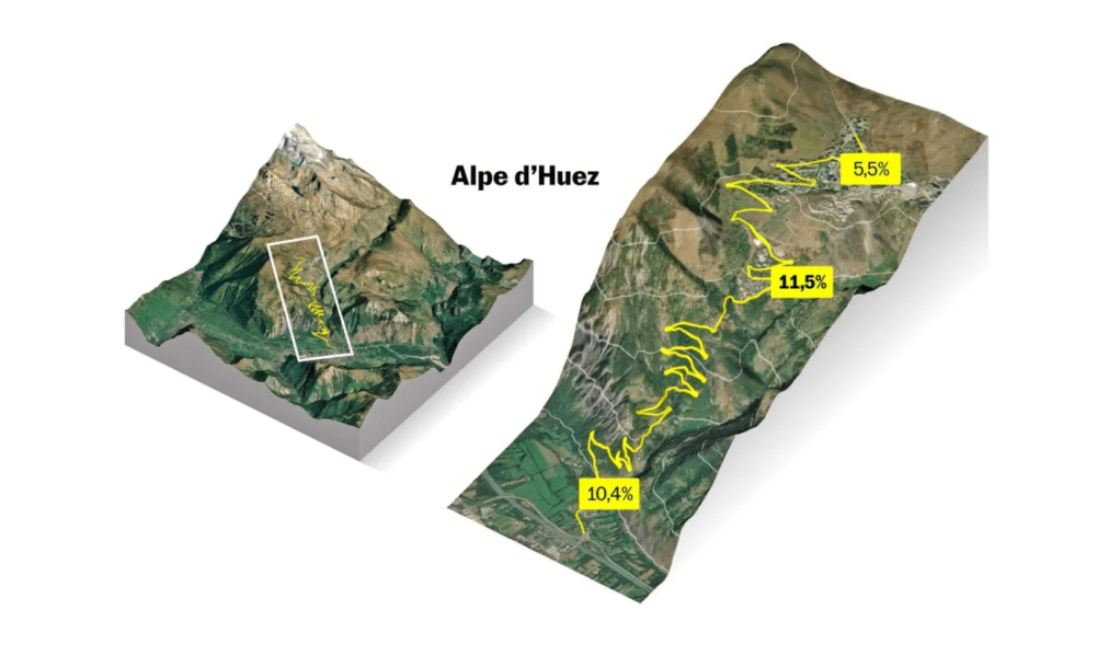 En mer rättvis fartjämförelse görs uppe på Alpe d´Huez. Den lilla skidturistorten där jag själv såg Pantanis genombrott 1994. Hans landsman Fausto Coppi vann där första gången 1952. Sedan dess har man kört exakt samma sträcka. Så jämförelserna är ganska rättvisa, och den eventuella medvinden försumbar när du cyklar i 20 km/h.