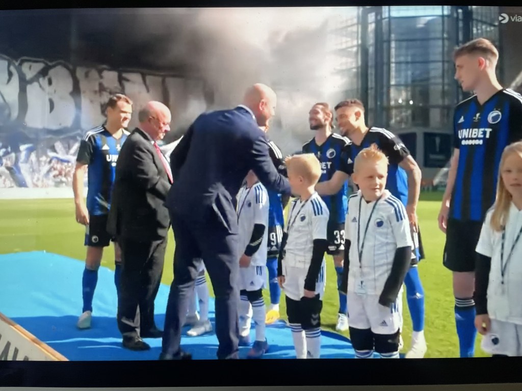 Lyngby var för övrigt med på ett hörn – traditionen kräver att kulturministern hälsar på lagen före avspark. Och kulturministern är naturligtvis blåvit även om politikerkostymen både var en nyans alltför mörkblå och en storlek alltför liten! Men han fick hälsat på Jordan Larsson! Presenterad av Viktor Claesson.