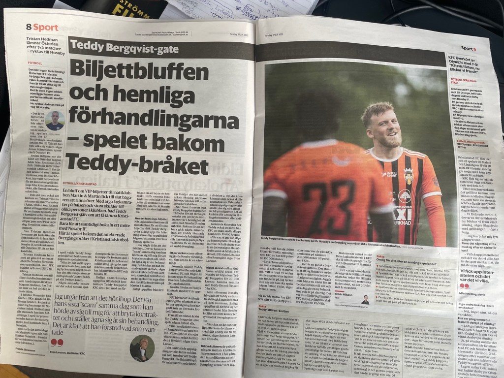 - Kristanstadsbladet, Kristianstads FC, Nosaby IF, SDS, spelmissbruk, TEddy Bergquist