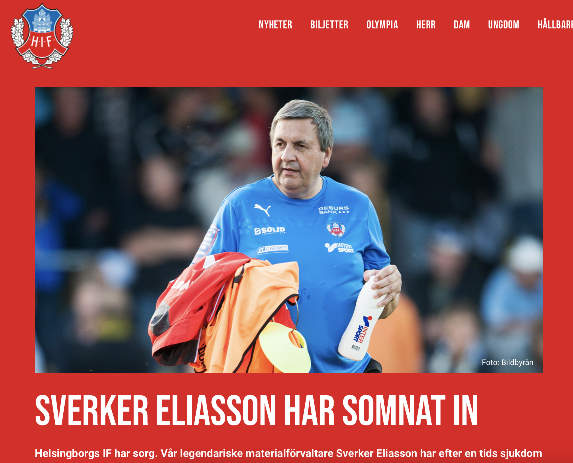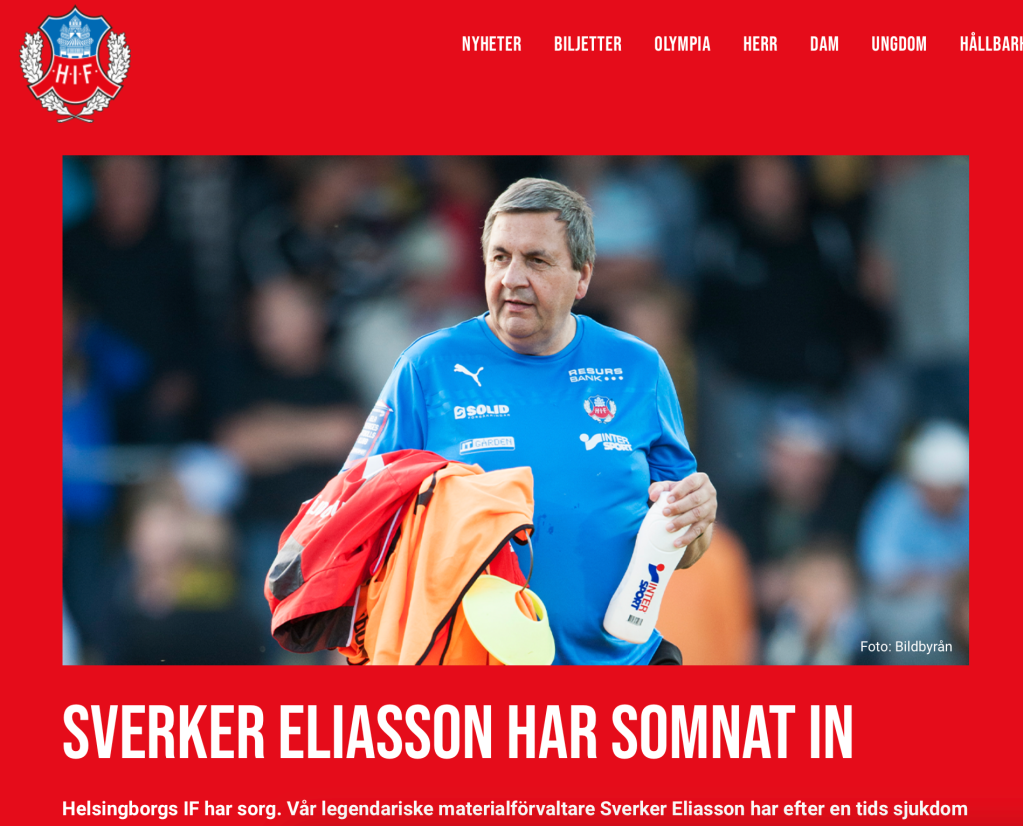 Säsongen 2007, när HIF fyllde 100 år publicerades en jubileumsbok. Jag fick äran att porträttera en av de verkliga stjärnorna, den då mindre kände materialaren, trotjänaren Sverker Eliasson. Han som tvättade tröjor, fixade skorna, kokade kaffe och gjorde tusen andra små men viktiga saker som aldrig officiellt bidrog till de allsvenska guld HIF vann under hans tid (1989-2013)