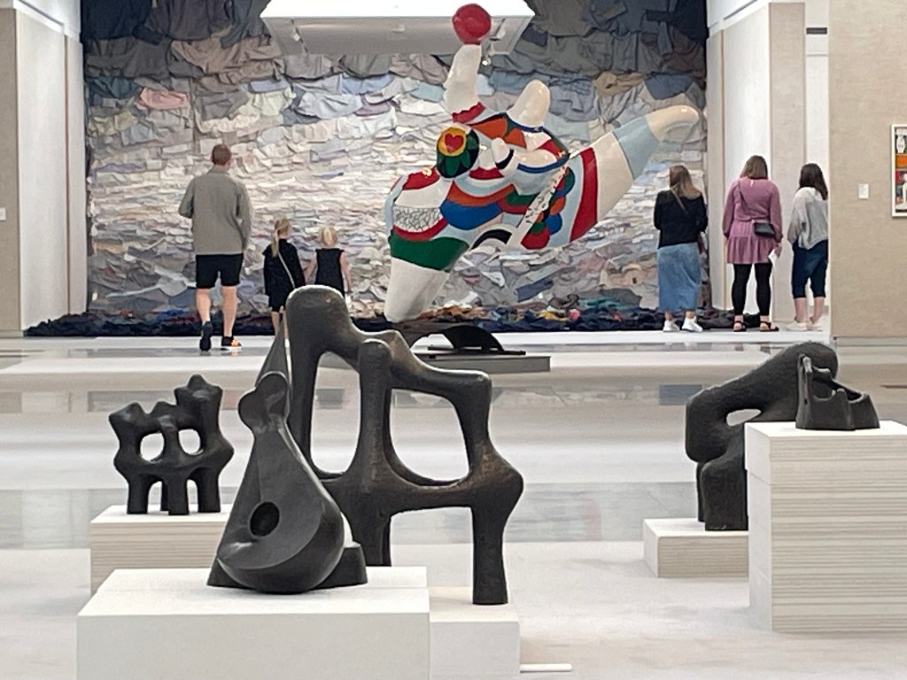 Ps Kunsten i Ålborg är en av Skandinaviens främsta konstmuseer. Och det absolut vackraste. Det har en stark europeisk profil. Fransyskan Niki de Saint Phalles färgglada skulptur kanske inspirerade Landin till den närmast identiska, nu redan klassiska, fotparaden? Den som dr.dk (Danmarks Radio) kallar ”mirakelredning i monstergyser”!
