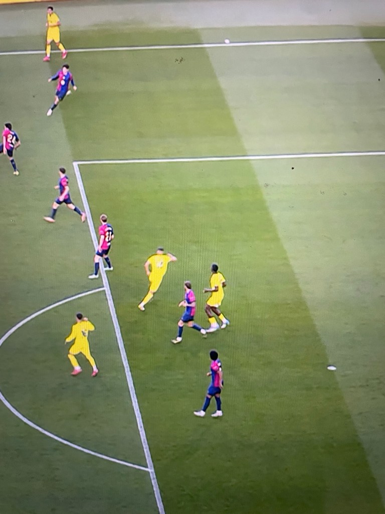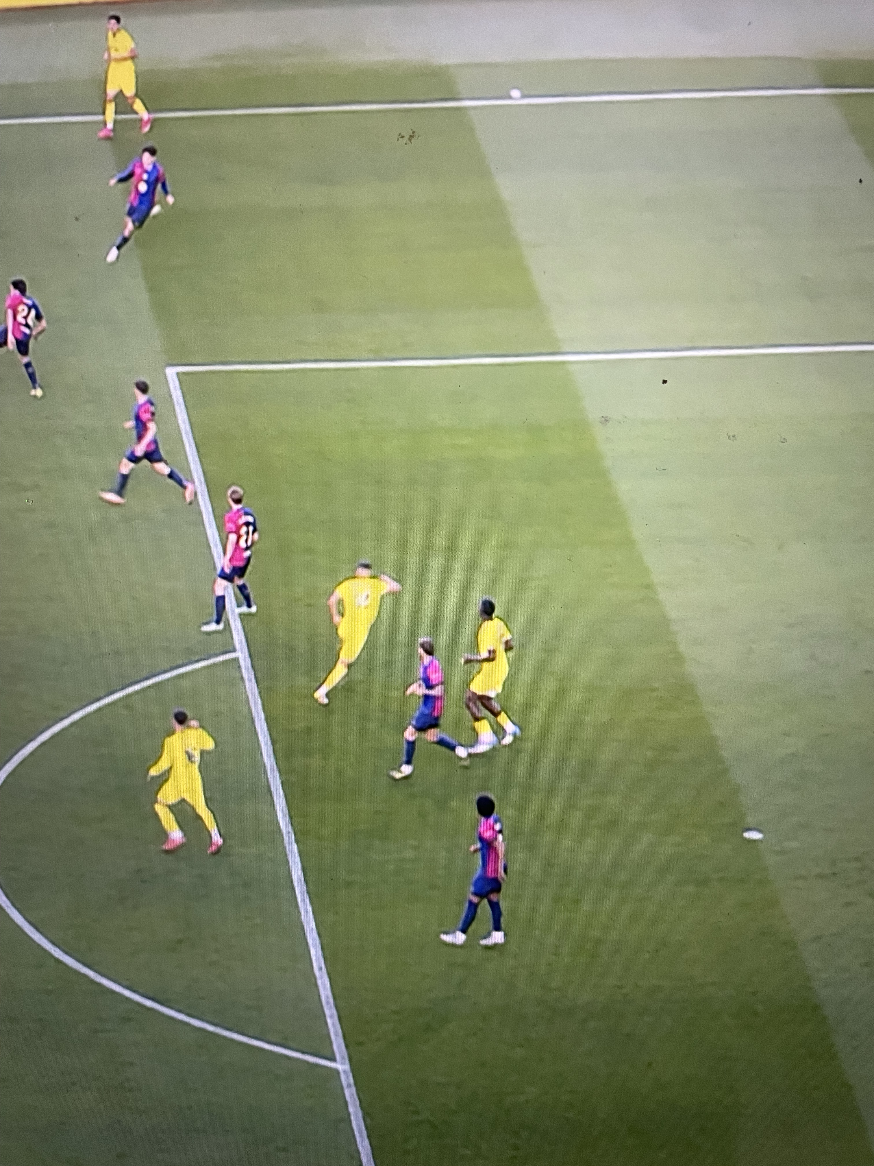 Vid 1-0 kommer man två mot noll tack vare att den offsidevarande spelaren inte anses påverka spelet. Vid 2-2 spelas bollen mot den offsidestående spelaren men så dyker åter en annan spelare upp i djupled och snor passningen framför den offsideståendens fötter för att sedan göra mål i friläge. I teorin kunde de åter ha varit två mot noll.