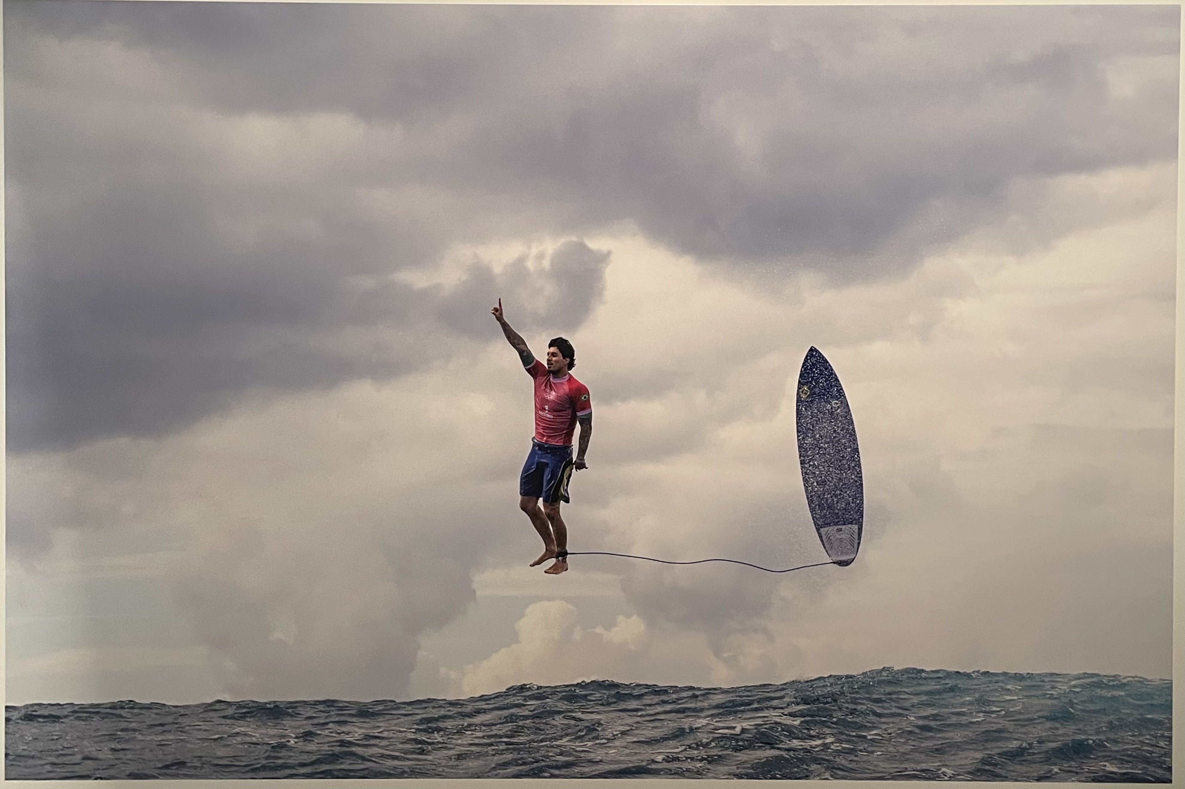 Det andra fotot på World Press Photo (i Politikens gamla presshall vid Rådhusplatsen fram till 19 oktober) är ett foto med starka kristna övertoner. Surfingen i OS 2024 pågår utanför Tahiti. Jerome Brouillet sitter med andra fotografer i en båt och de meterhöga vågorna gör att de sällan ser surfarna. Så fotografen chansar på när brassen Gabriel Medina ska komma över vågen. Han får fyra rutor och den här anses var ett av de bästa sportfotona genom alla tider. Men det är inte enbart för att det ser ut som han trotsar tyngdkraften. Medina går på vattnet och pekar upp mot himlen. Gabriel var en ängel i Bibeln, en ärkeängel. Är det Jesus vi ser i birollen som surfingbräda?