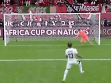 Vad som ytterligare stärker teorin att något var fundamentalt fel i den här turneringen är en annan missad straff. I straffsparksavgörandet i semin slog Nigerias Bruno Onyemaechi(vänsterback i Olympiakos) deras sista straff mot höger sida av målet. Marockos Bounou (tillvardags i Al-Hilal efter många säsonger i Sevilla) gick rätt. Bokstavligen så gick han, eller snarare sprang, mot sin vänstra stolpe långt innan straffen slogs. Bounou avvaktar alltså inte och kastar sig rätt utan springer så ivrigt att när den dåliga straffen kommer där kan inte Bounou stoppa. Han halkar med vänsterfoten som är på väg att glida ned mot hörnflaggan, på fel sida om stolpen och han räddar genom att fläka sin in mot mitten av målet och parera med underarmen.