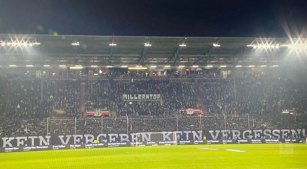 På samma läktare finns vid varje matchen stor anti-AfD-flagga – den i särklass största av alla efter som det är ett budskap hela kortsidan står bakom. Pauli är synonymt med Tysklands mest radikala elitklubb. Från den socialdemokratiska stad där de är det vänsterorienterade alibit.